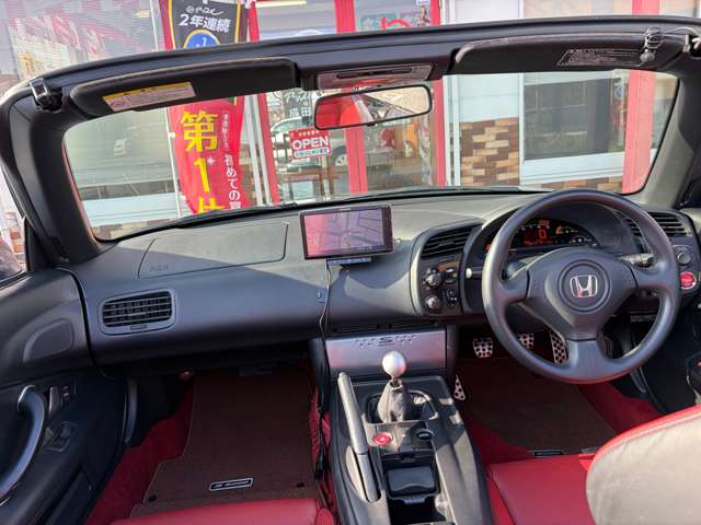 H21年S2000が赤革シート・フロントスポイラー・リアウイング・ナビ・HID・ETC