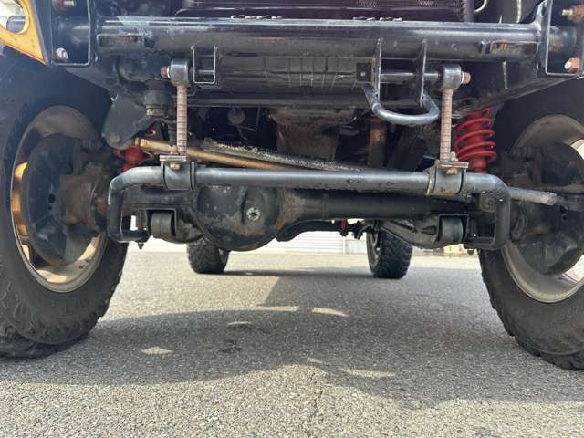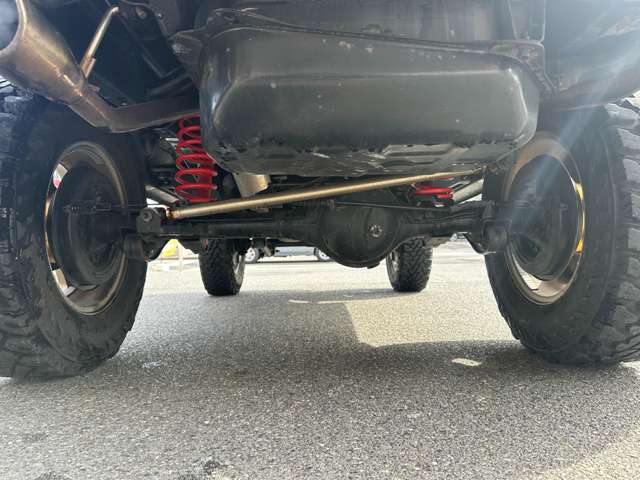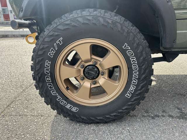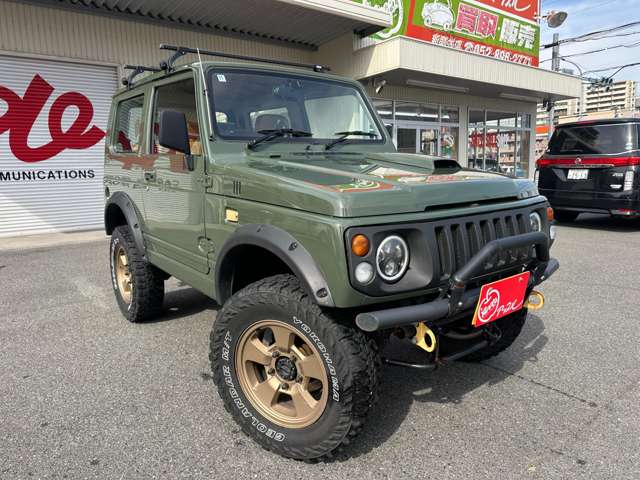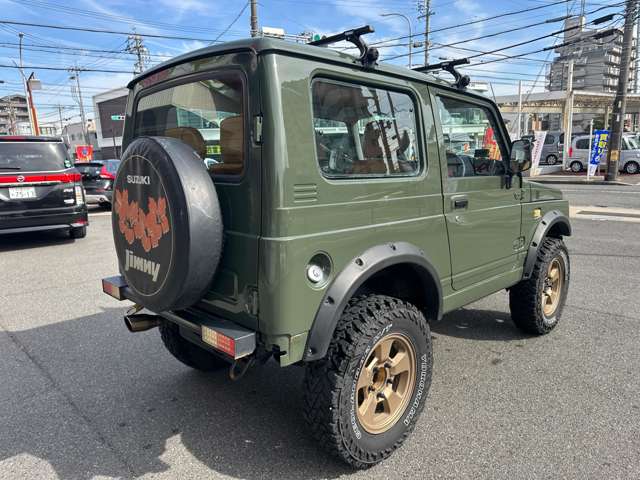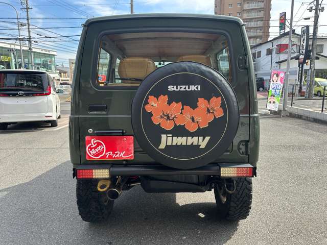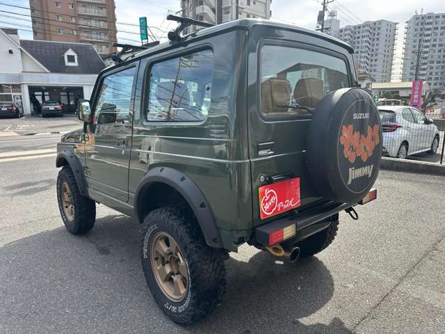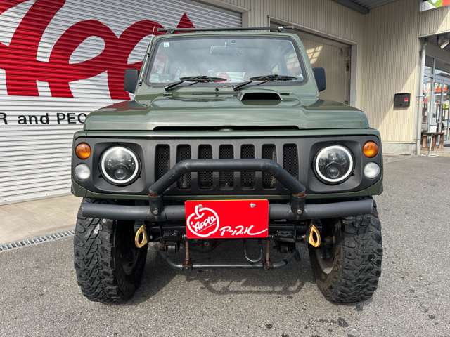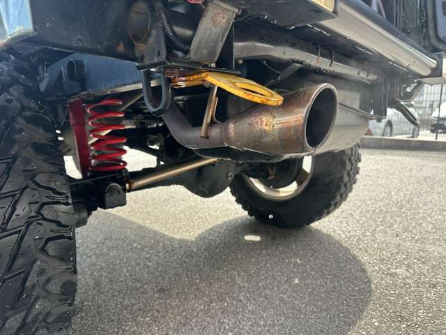 リフトアップしたジムニー5速MT入庫です。社外マフラー F・Rバンパー