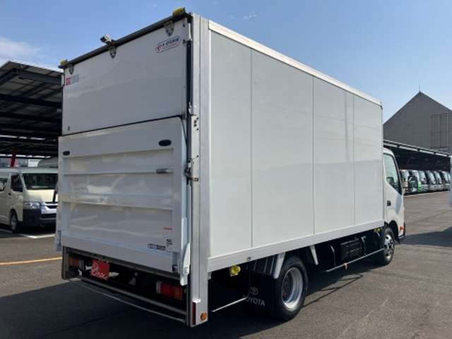 荷室長さ438幅208高さ178・跳ね上げゲート・600kg・ラッシングレール1段・