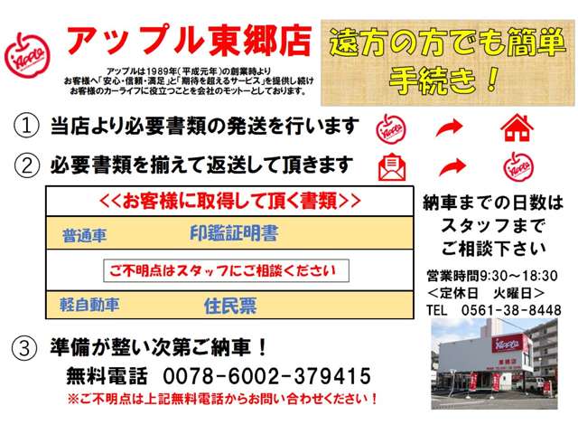 メーカー保証継承&アップル1年保証付きです!安心の406部位対象のアップル1年保証付き!メーカー保証期間内、規定走行距離までの保証対応となります。最寄りのディーラー様、整備工場での保証修理が可能です!