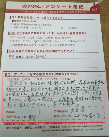 店長は若干声が大きい(笑)スタッフの方はお若いのにひとなつっこい感じで2度目の電話の時でも私を覚えていてくれて安心しました。