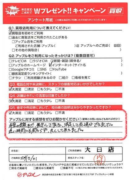 お車のご相談・ 査定だけでもOK! カンタン 入力 30秒 アップルがブランド買取始めました! お電話でも受付中! 受付時間9:30 ~ 18:30 052-805-5411 お車のご相談・ 査定だけでもOK! カンタン 入力 30秒 アップルがブランド買取始めました! お電話でも受付中! 受付時間9:30 ~ 18:30 052-805-5411 アップルがブランド買取始めました! お電話でも受付中! 受付時間9:30 ~ 18:30 052-805-5411 店舗情報 在庫車 スタッフ紹介 ブログ お客様の声 キャンペーン 無料査定 click お客様の声 ご記入日: 2023/10/01 T様 車名:フィアット 満足度★★★★★希望の金額まで提示して頂き、満足して売る事ができました。遅い時間にも関わらず、良くして頂きました。 前へ 次へ お客様の声一覧を見る
