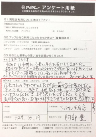 そのうえ、一発で他店よりも高い価格をつけていただき即決いたしました。とても気持ちの良いお取引をさせていただき感謝しています。