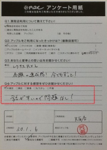 お車のご相談・ 査定だけでもOK! カンタン 入力 30秒 アップルがブランド買取始めました! お電話でも受付中! 受付時間9:30 ~ 18:30 052-805-5411 お車のご相談・ 査定だけでもOK! カンタン 入力 30秒 アップルがブランド買取始めました! お電話でも受付中! 受付時間9:30 ~ 18:30 052-805-5411 アップルがブランド買取始めました! お電話でも受付中! 受付時間9:30 ~ 18:30 052-805-5411 店舗情報 在庫車 スタッフ紹介 ブログ お客様の声 キャンペーン 無料査定 click お客様の声 ご記入日: 2018/01/06 K・T様 ■ご利用日時■ H 30 年 1 月 6 日■車種■ レクサスRX■担当者■ 阿部店長《アップルに対する感想をぜひお書きください》満足度★★★★★話が早いので問題なし! 前へ 次へ お客様の声一覧を見る