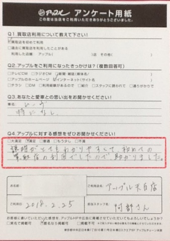 説明がとてもわかりやすくて、初めての買取店の利用でしたので助かりました。