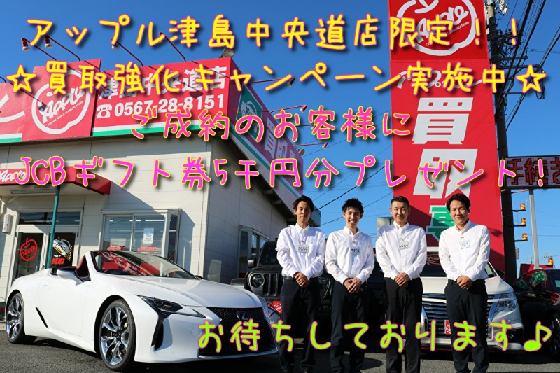 お車のご相談・ 査定だけでもOK! カンタン 入力 30秒 アップルがブランド買取始めました! お電話でも受付中! 受付時間10:00 ~ 19:00 0567-28-8151 お車のご相談・ 査定だけでもOK! カンタン 入力 30秒 アップルがブランド買取始めました! お電話でも受付中! 受付時間10:00 ~ 19:00 0567-28-8151 アップルがブランド買取始めました! お電話でも受付中! 受付時間10:00 ~ 19:00 0567-28-8151 店舗情報 在庫車 スタッフ紹介 ブログ お客様の声 キャンペーン 無料査定 click [ 未分類 ] 2022/06/07 (火) 10:41 ★☆当店限定キャンペーンのお知らせ☆★ 皆様こんにちは! いつもアップル津島中央道店のブログをご覧下さり 誠にありがとうございます!! 店長の山口です☆彡本日のブログは・・・またまた開催!!当店独自のキャンペーンのご案内です!6/30(木)までの期間中ご契約時にHP上の告知画面を ご提示頂いた方お客様に JCBギフトカード5千円分をプレゼント! 先着順となりますので、なくなり次第終了となります! 是非お気軽にスタッフまでお申し付けください(^^)/ ※お引き取り車両は対象外とさせて頂きます。 その他特典との併用は不可となります。ご了承くださいませ。お車のご売却をご検討中の皆様この機会に是非!!アップル津島中央道店へお越し下さいませ!(^^)!皆様のご来店をスタッフ一同心よりお待ち申し上げます♪♪ 2022-06-07 10:41:00 新しい記事へ 古い記事へ 最新記事 ~しまかぜ食堂さん~おしらせ!いっぱいとれるってよ!?~ハイウェイの堕天使~ぬま~沼~ 店舗情報に戻る 月別アーカイブ 2026年04月(18)2026年03月(27)2026年02月(24)2026年01月(23)2025年12月(23)2025年11月(27)2025年10月(26)2025年09月(26)2025年08月(21)2025年07月(26)2025年06月(26)2025年05月(21)2025年04月(24)2025年03月(27)2025年02月(24)2025年01月(23)2024年12月(23)2024年11月(26)2024年10月(26)2024年09月(26)2024年08月(21)2024年07月(26)2024年06月(26)2024年05月(23)2024年04月(22)2024年03月(27)2024年02月(25)2024年01月(23)2023年12月(23)2023年11月(25)2023年10月(27)2023年09月(26)2023年08月(21)2023年07月(27)2023年06月(26)2023年05月(22)2023年04月(25)2023年03月(26)2023年02月(24)2023年01月(25)2022年12月(24)2022年11月(25)2022年10月(27)2022年09月(26)2022年08月(21)2022年07月(27)2022年06月(25)2022年05月(22)2022年04月(26)2022年03月(26)2022年02月(24)2022年01月(24)2021年12月(22)2021年11月(26)2021年10月(27)2021年09月(25)2021年08月(22)2021年07月(27)2021年06月(25)2021年05月(23)2021年04月(25)2021年03月(26)2021年02月(24)2021年01月(23)2020年12月(23)2020年11月(26)2020年10月(27)2020年09月(24)2020年08月(22)2020年07月(24)2020年06月(25)2020年05月(21)2020年04月(23)2020年03月(26)2020年02月(24)2020年01月(22)2019年12月(21)2019年11月(24)2019年10月(24)2019年09月(22)2019年08月(19)2019年07月(16)2019年06月(18)2019年05月(16)2019年04月(9)2019年03月(4)2019年02月(6)2019年01月(2)2018年12月(3)2018年11月(4)2018年10月(21)2018年09月(25)2018年08月(22)2018年07月(27)2018年06月(24)2018年05月(23)2018年04月(25)2018年03月(27)2018年02月(22)2018年01月(24)2017年12月(23)2017年11月(23)2017年10月(22)2017年09月(23)2017年08月(21)2017年07月(18)2017年06月(12)2017年05月(10)2017年04月(10)2017年03月(7)2017年02月(8)2017年01月(12)2016年12月(12)2016年11月(12)2016年10月(10)2016年09月(17)2016年08月(19)2016年07月(21)2016年06月(5)2016年05月(6)2016年04月(4)2016年03月(4)2016年02月(3)2016年01月(6)2015年12月(6)2015年11月(6)2015年10月(7)2015年09月(8)2015年08月(8)2015年07月(7)2015年06月(6)2015年05月(6)2015年04月(6)2015年03月(6)2015年02月(4)2015年01月(7)2014年12月(7)2014年11月(5)2014年10月(6)2014年09月(8)2014年08月(10)2014年07月(9)2014年06月(12)2014年05月(13)2014年04月(8)2014年03月(3)2014年02月(4)2014年01月(4)2013年12月(4)2013年11月(5)2013年10月(4)2013年09月(2)2013年08月(1)