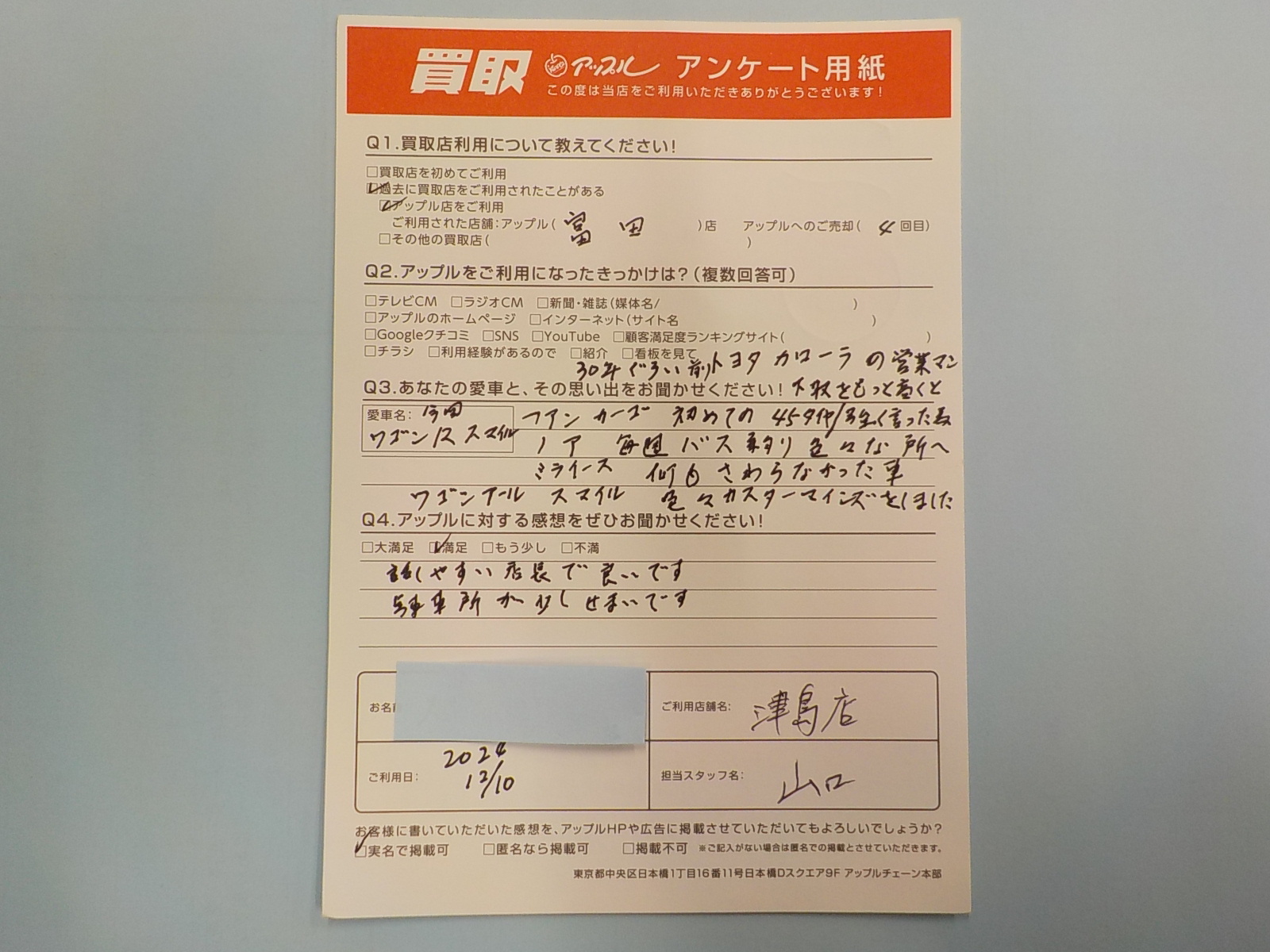 お車のご相談・ 査定だけでもOK! カンタン 入力 30秒 アップルがブランド買取始めました! お電話でも受付中! 受付時間10:00 ~ 19:00 0567-28-8151 お車のご相談・ 査定だけでもOK! カンタン 入力 30秒 アップルがブランド買取始めました! お電話でも受付中! 受付時間10:00 ~ 19:00 0567-28-8151 アップルがブランド買取始めました! お電話でも受付中! 受付時間10:00 ~ 19:00 0567-28-8151 店舗情報 在庫車 スタッフ紹介 ブログ お客様の声 キャンペーン お得 無料査定 click お客様の声 ご記入日: 2024/12/10 I(男性)様 話しやすい店長で良いです。駐車所が少しせまいです。 前へ 次へ お客様の声一覧を見る