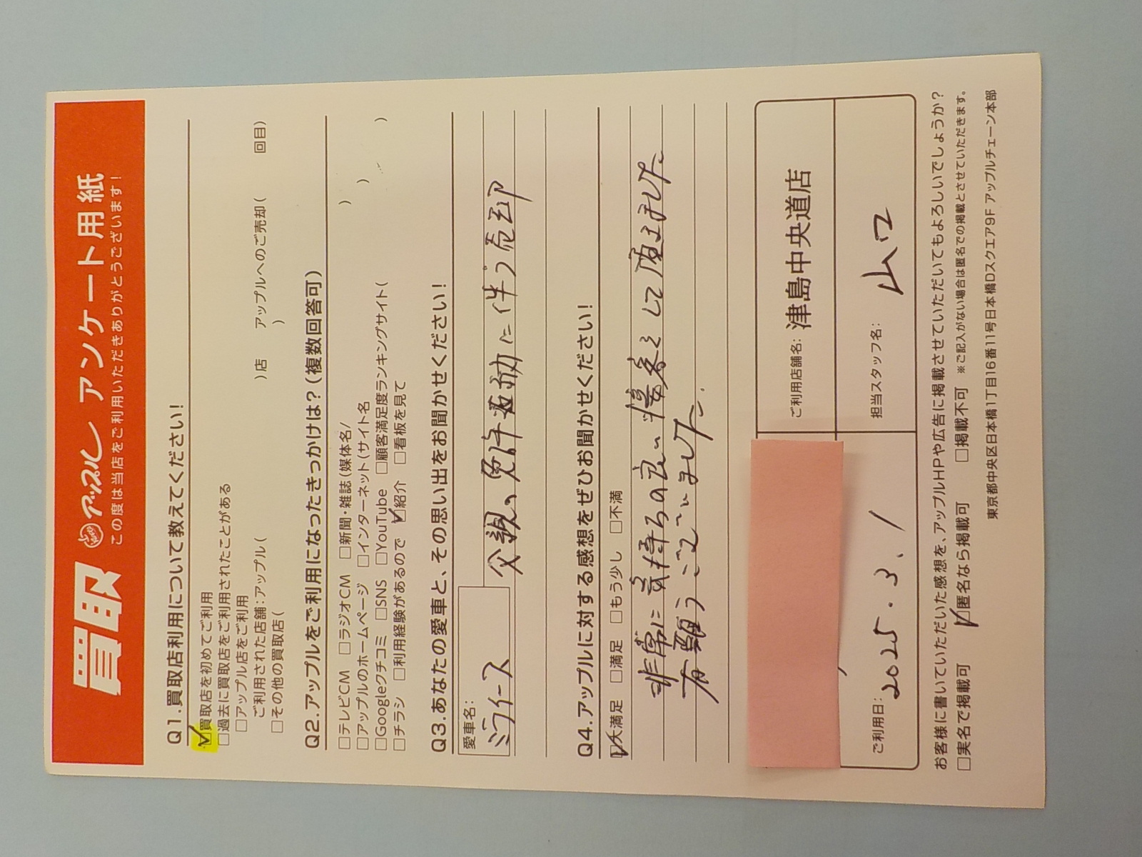 お車のご相談・ 査定だけでもOK! カンタン 入力 30秒 アップルがブランド買取始めました! お電話でも受付中! 受付時間10:00 ~ 19:00 0567-28-8151 お車のご相談・ 査定だけでもOK! カンタン 入力 30秒 アップルがブランド買取始めました! お電話でも受付中! 受付時間10:00 ~ 19:00 0567-28-8151 アップルがブランド買取始めました! お電話でも受付中! 受付時間10:00 ~ 19:00 0567-28-8151 店舗情報 在庫車 スタッフ紹介 ブログ お客様の声 キャンペーン お得 無料査定 click お客様の声 ご記入日: 2025/03/01 匿名様 車名:ダイハツ ミライース 非常に気持ちの良い接客をして頂きました有難うございました 前へ 次へ お客様の声一覧を見る