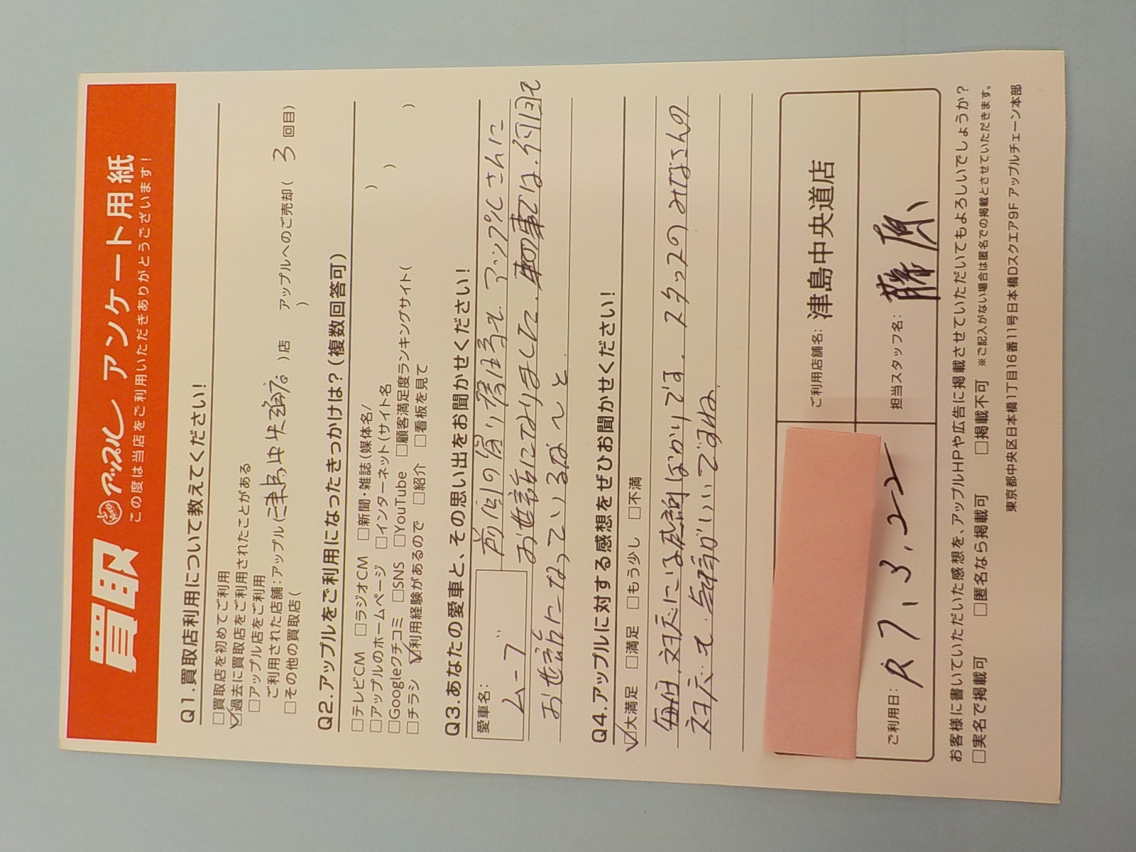 お車のご相談・ 査定だけでもOK! カンタン 入力 30秒 アップルがブランド買取始めました! お電話でも受付中! 受付時間10:00 ~ 19:00 0567-28-8151 お車のご相談・ 査定だけでもOK! カンタン 入力 30秒 アップルがブランド買取始めました! お電話でも受付中! 受付時間10:00 ~ 19:00 0567-28-8151 アップルがブランド買取始めました! お電話でも受付中! 受付時間10:00 ~ 19:00 0567-28-8151 店舗情報 在庫車 スタッフ紹介 ブログ お客様の声 キャンペーン お得 無料査定 click お客様の声 ご記入日: 2025/03/22 K(男性)様 車名:ダイハツ ムーヴ 毎回対応には感謝ばかりです、スタッフのみなさんの対応も気持ちがいいですね 前へ 次へ お客様の声一覧を見る