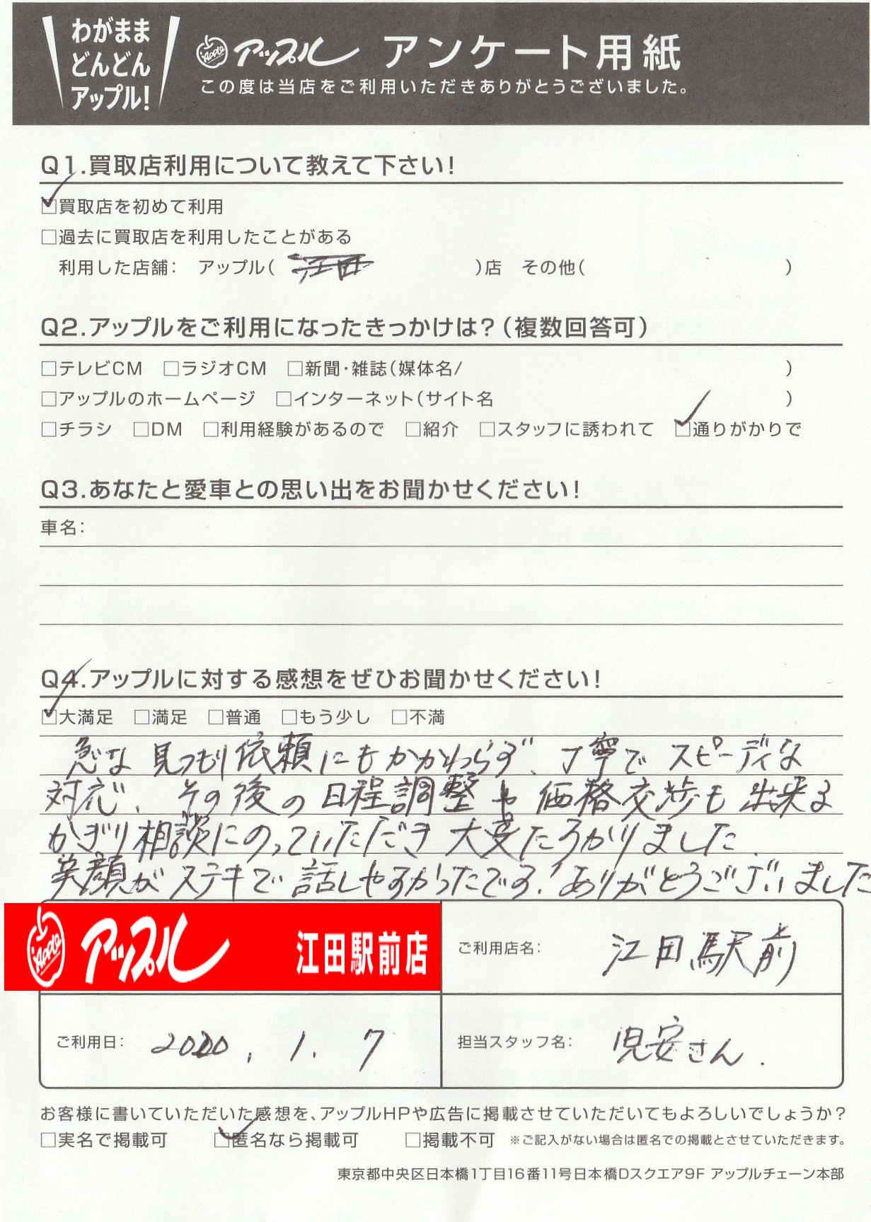 急な見積もり依頼にもかかわらず、丁寧でスピーディな対応、その後の日程調整や価格交渉も、出来るかぎり相談にのっていただき大変助かりました。
