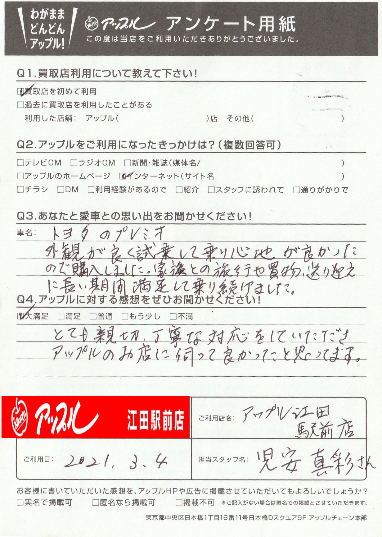 家族との旅行や買物、送り迎えに長い期間満足して乗り続けました。