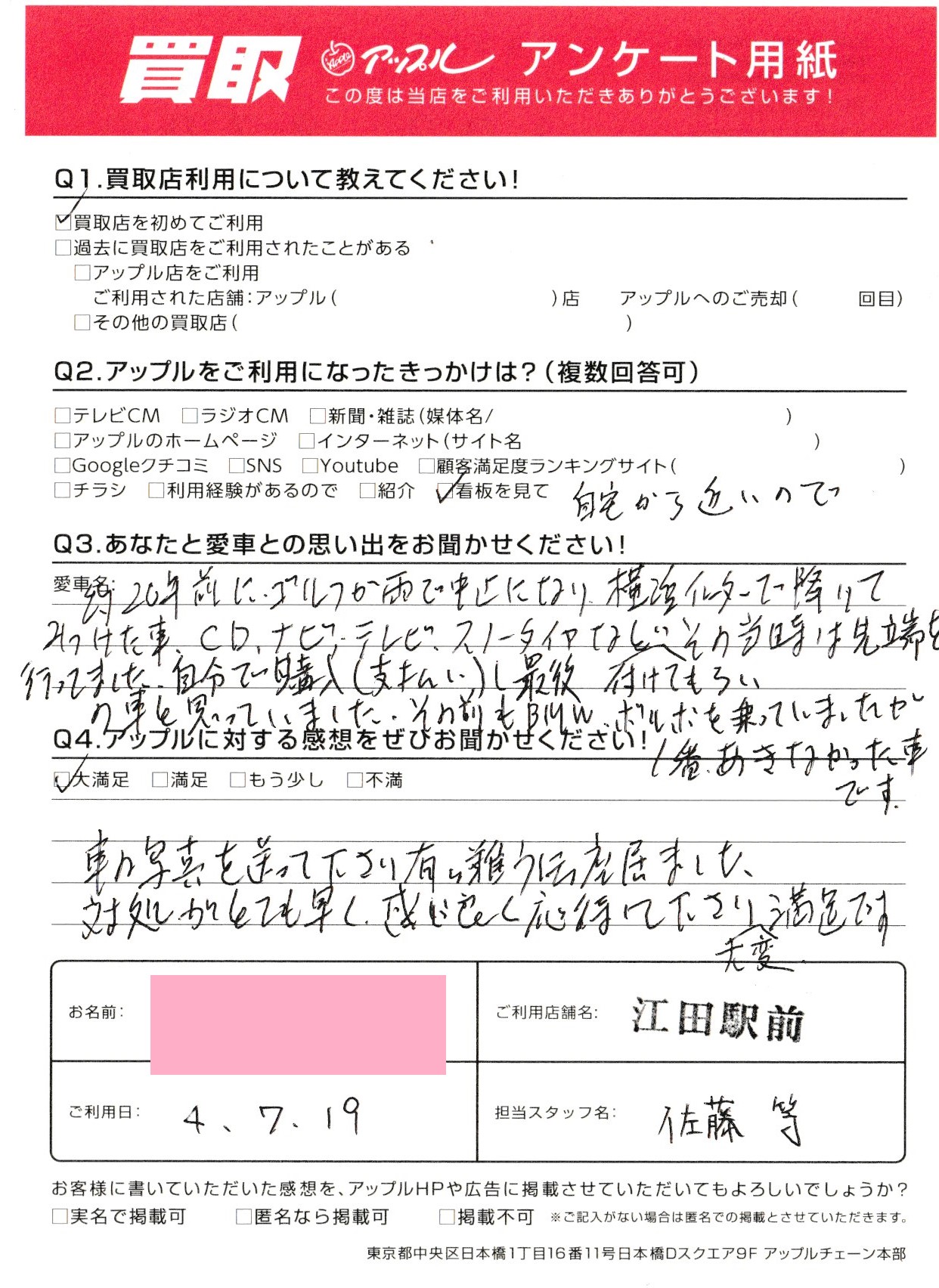 お車のご相談・ 査定だけでもOK! カンタン 入力 30秒 アップルがブランド買取始めました! お電話でも受付中! 受付時間10:00 ~ 19:00 045-912-7560 お車のご相談・ 査定だけでもOK! カンタン 入力 30秒 アップルがブランド買取始めました! お電話でも受付中! 受付時間10:00 ~ 19:00 045-912-7560 アップルがブランド買取始めました! お電話でも受付中! 受付時間10:00 ~ 19:00 045-912-7560 店舗情報 在庫車 スタッフ紹介 ブログ お客様の声 キャンペーン 無料査定 click お客様の声 ご記入日: 2022/07/19 O様 車名:メルセデス・ベンツ CLSクラス 車の写真を送って下さり有り難う御座いました。対処がとても早く、感じ良く応対して下さり大変満足です。 前へ 次へ お客様の声一覧を見る
