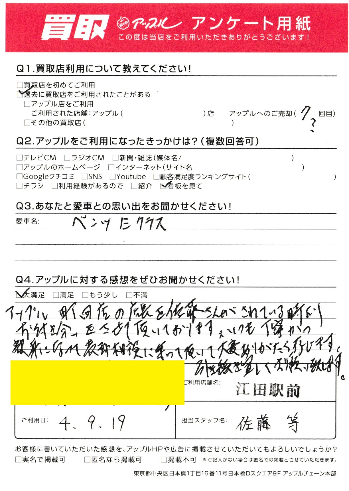 アップル町田店の店長を佐藤さんがされている時よりお付き合いをさせて頂いております。いつも丁寧かつ親身になって売却相談に乗って頂いて大変ありがたく存じます。