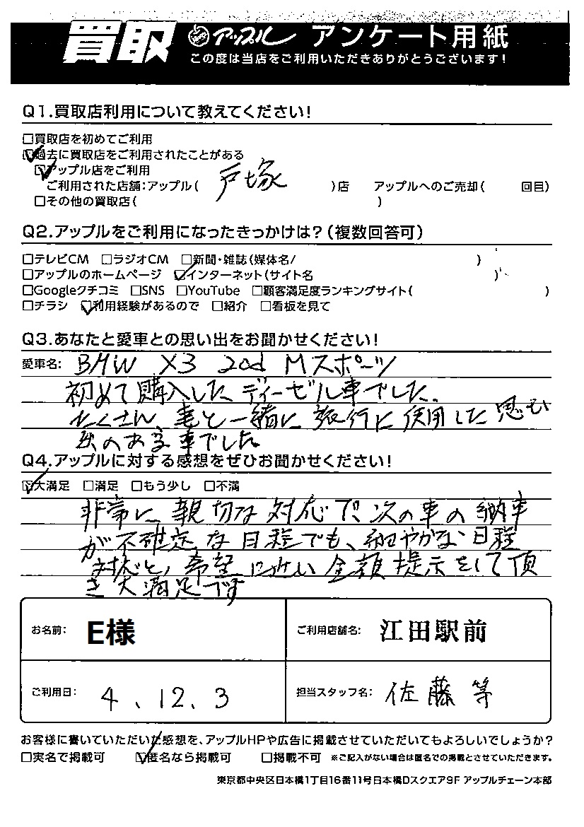 E様 車名:BMW X3