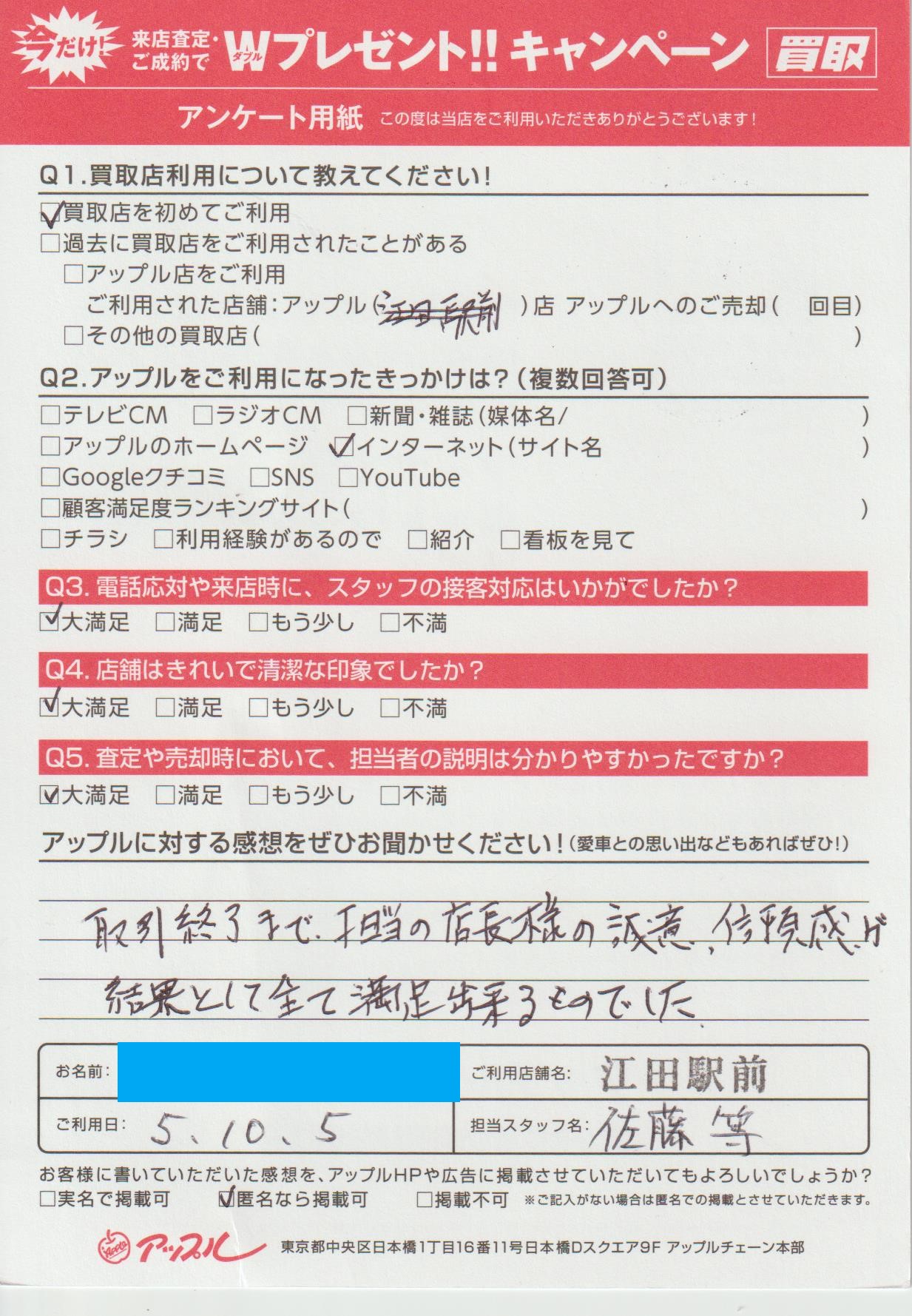 お車のご相談・ 査定だけでもOK! カンタン 入力 30秒 アップルがブランド買取始めました! お電話でも受付中! 受付時間10:00 ~ 19:00 045-912-7560 お車のご相談・ 査定だけでもOK! カンタン 入力 30秒 アップルがブランド買取始めました! お電話でも受付中! 受付時間10:00 ~ 19:00 045-912-7560 アップルがブランド買取始めました! お電話でも受付中! 受付時間10:00 ~ 19:00 045-912-7560 店舗情報 在庫車 スタッフ紹介 ブログ お客様の声 キャンペーン 無料査定 click お客様の声 ご記入日: 2023/10/05 S様 車名:トヨタ ウィッシュ 取引終了まで、担当の店長様の誠意、信頼感が結果としてすべて満足できるものでした。 前へ 次へ お客様の声一覧を見る