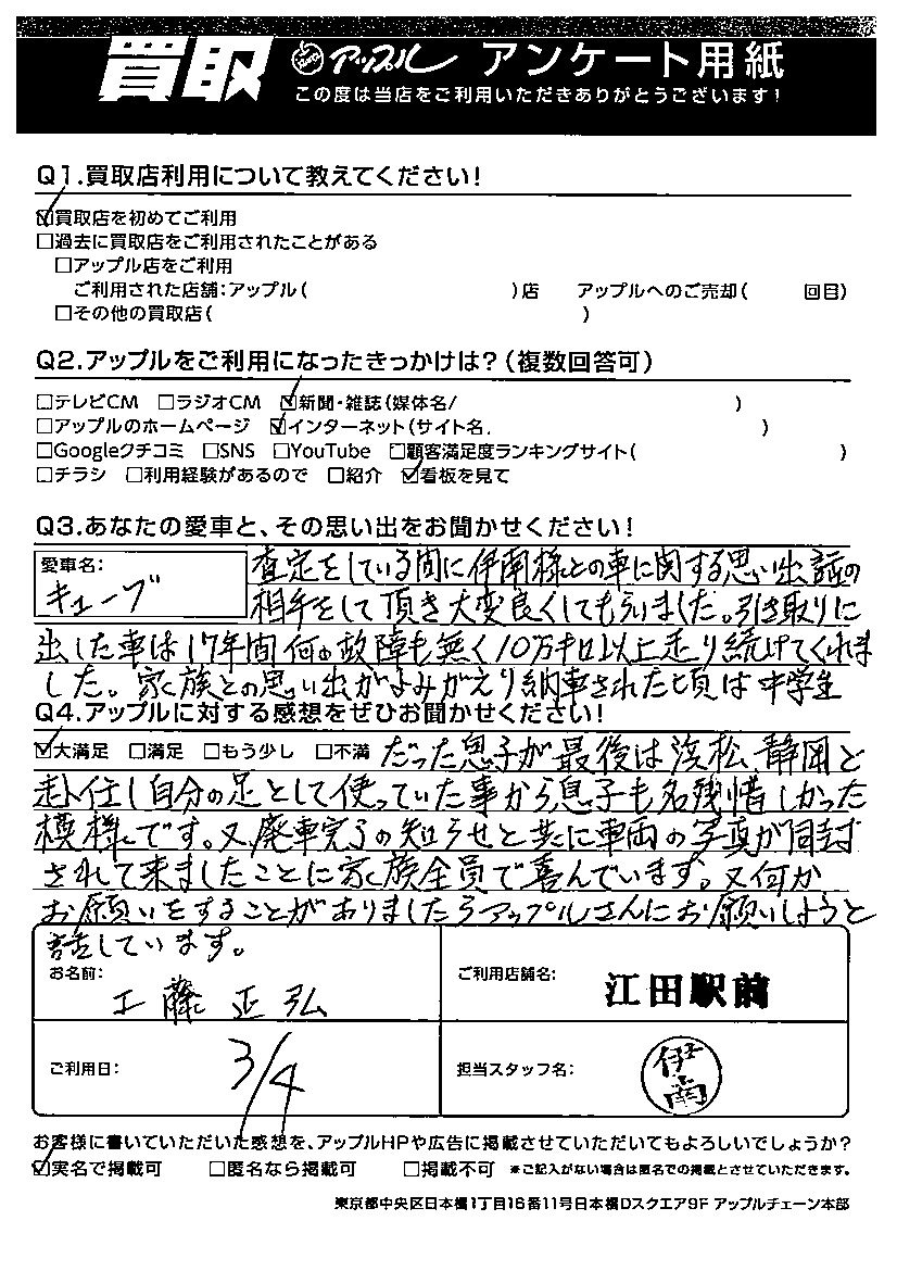 出した車は17年間何の故障もなく10万キロ以上走り続けてくれました。