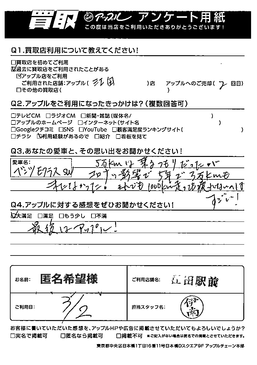 匿名希望様 車名:メルセデス・ベンツ Eクラスワゴン(93年9月~)