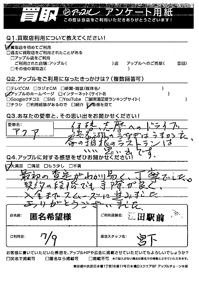 ご利用日:2024年7月9日 担当:宮下