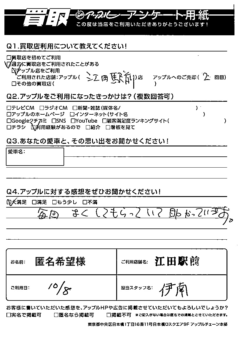 ご利用日:2024/10/08 匿名希望様