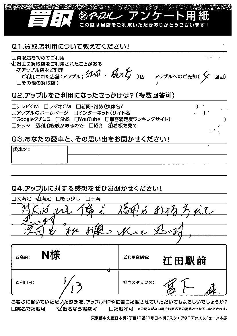 対応がとても丁寧で、信用がおける方だと思います。次回もまたお願いしたいと思います。