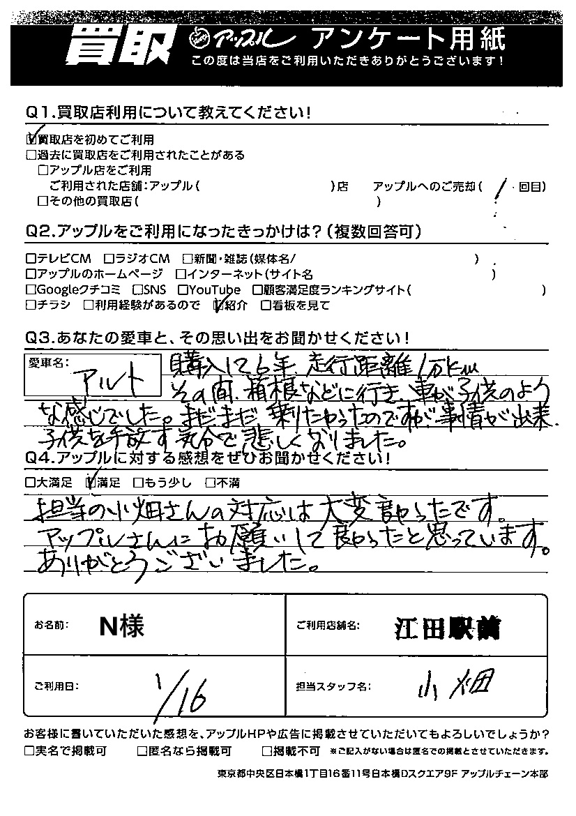 ご愛車 アルト 担当:小畑