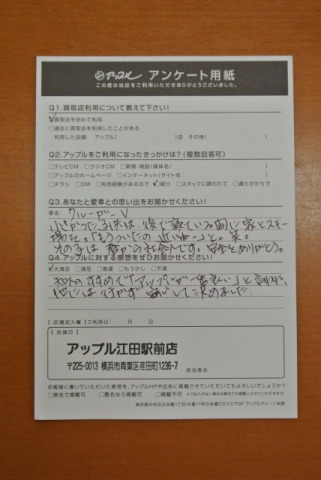 この度は、アップル江田駅前店をご利用していただき 有難う御座います。 思い出が詰まった大事なお車を買い取りさせて頂き うれしく思っております。子供の成長って、早いですよね(笑) お近くをお通りの際は、是非遊びにいらしてください。
