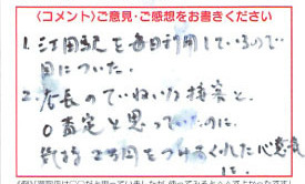 お車のご相談・ 査定だけでもOK! カンタン 入力 30秒 アップルがブランド買取始めました! お電話でも受付中! 受付時間10:00 ~ 19:00 045-912-7560 お車のご相談・ 査定だけでもOK! カンタン 入力 30秒 アップルがブランド買取始めました! お電話でも受付中! 受付時間10:00 ~ 19:00 045-912-7560 アップルがブランド買取始めました! お電話でも受付中! 受付時間10:00 ~ 19:00 045-912-7560 店舗情報 在庫車 スタッフ紹介 ブログ お客様の声 キャンペーン 無料査定 click お客様の声 ご記入日: 2012/06/09 T・J様 江田駅を毎日利用しているので目についた。店長の丁寧な接客と、0査定と思っていたのに2万円を付けてくれた心意気に。 前へ 次へ お客様の声一覧を見る