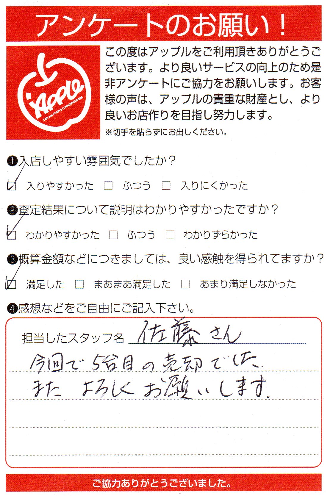 お車のご相談・ 査定だけでもOK! カンタン 入力 30秒 アップルがブランド買取始めました! お電話でも受付中! 受付時間10:00 ~ 19:00 045-912-7560 お車のご相談・ 査定だけでもOK! カンタン 入力 30秒 アップルがブランド買取始めました! お電話でも受付中! 受付時間10:00 ~ 19:00 045-912-7560 アップルがブランド買取始めました! お電話でも受付中! 受付時間10:00 ~ 19:00 045-912-7560 店舗情報 在庫車 スタッフ紹介 ブログ お客様の声 キャンペーン 無料査定 click お客様の声 ご記入日: 2020/02/25 H様 車名:メルセデス・ベンツ Gクラス 今回で5代目の売却でした。またよろしくおねがいします。 前へ 次へ お客様の声一覧を見る