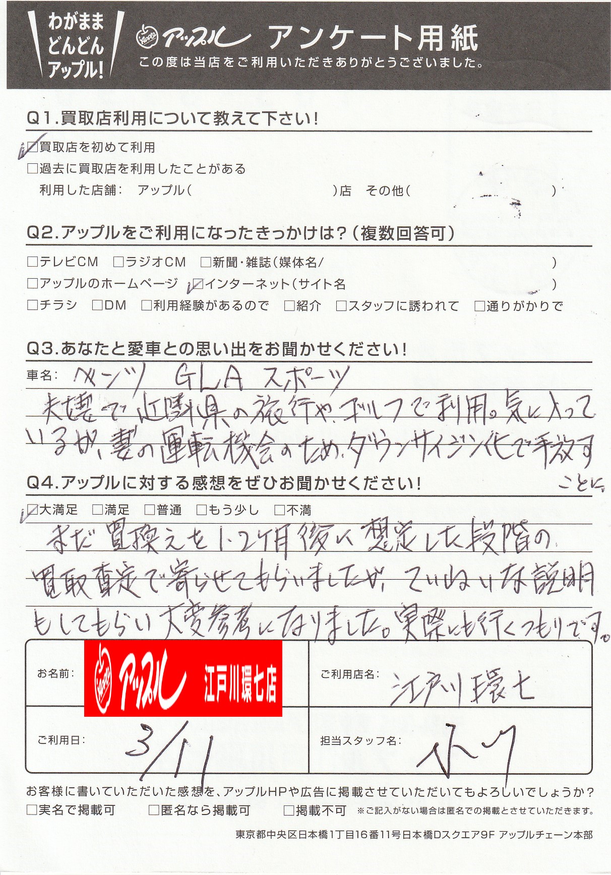 F様 車名:メルセデス・ベンツ GLAクラス