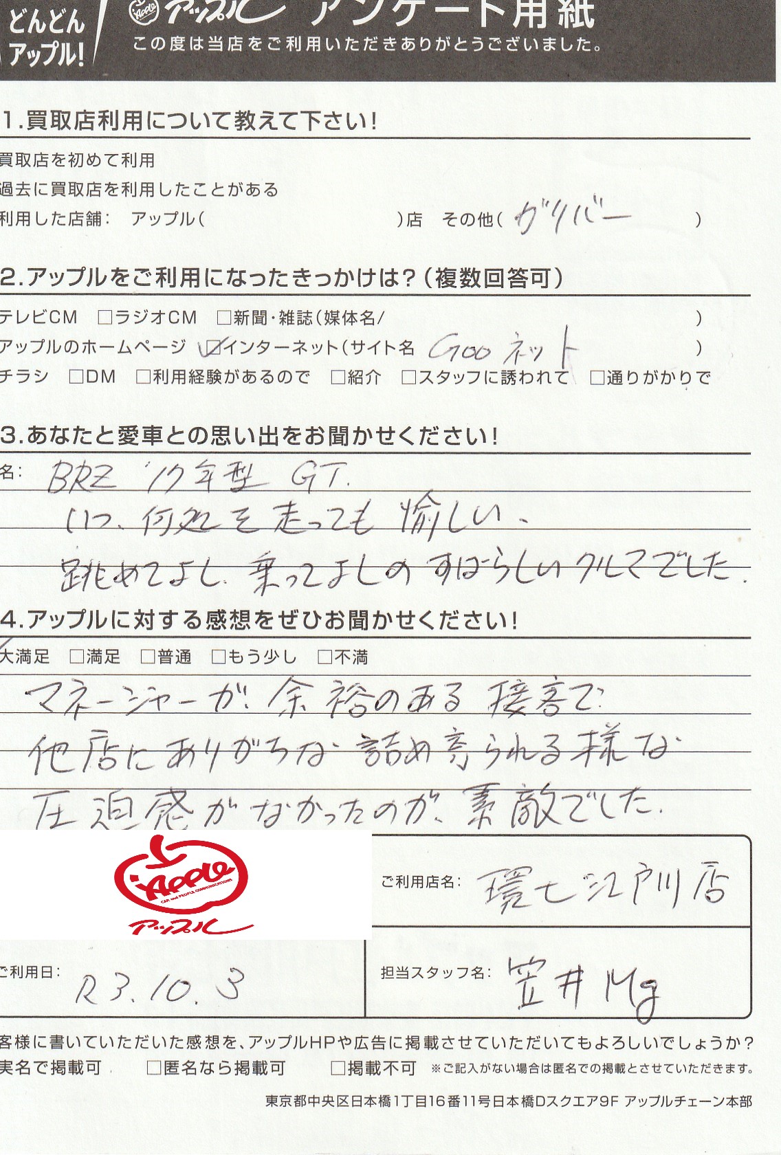 お車のご相談・ 査定だけでもOK! カンタン 入力 30秒 アップルがブランド買取始めました! お電話でも受付中! 受付時間10:00 ~ 19:00(最終査定受付時間は18:00です) 03-5658-0393 お車のご相談・ 査定だけでもOK! カンタン 入力 30秒 アップルがブランド買取始めました! お電話でも受付中! 受付時間10:00 ~ 19:00(最終査定受付時間は18:00です) 03-5658-0393 アップルがブランド買取始めました! お電話でも受付中! 受付時間10:00 ~ 19:00(最終査定受付時間は18:00です) 03-5658-0393 店舗情報 在庫車 スタッフ紹介 ブログ お客様の声 キャンペーン お得 無料査定 click お客様の声 ご記入日: 2021/10/03 K様 車名:スバル BRZ 前へ 次へ お客様の声一覧を見る