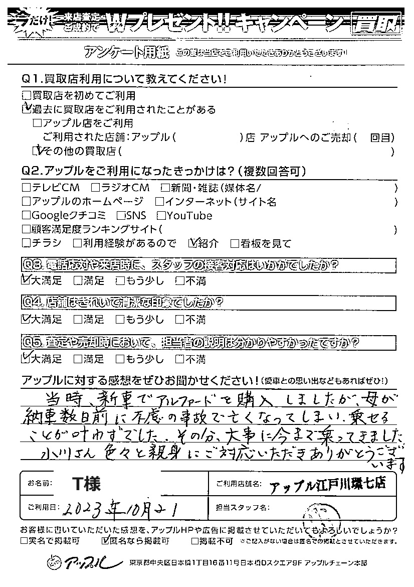 ご利用日:2023年10月21日 担当:小川