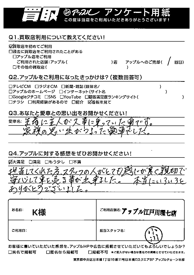担当してくれた方、スタッフの人がとても感じが良く親切で