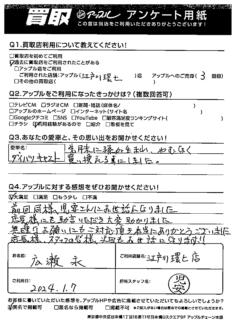無理なお願いにもご対応頂き本当にありがとうございました。