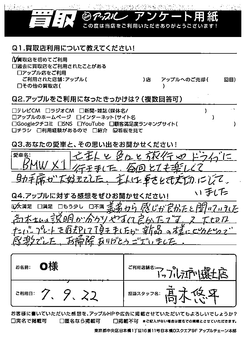 O様 車名:BMW X1