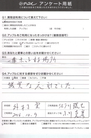 お車のご相談・ 査定だけでもOK! カンタン 入力 30秒 アップルがブランド買取始めました! お電話でも受付中! 受付時間10:00 ~ 19:00(最終査定受付時間は18:00です) 03-5658-0393 お車のご相談・ 査定だけでもOK! カンタン 入力 30秒 アップルがブランド買取始めました! お電話でも受付中! 受付時間10:00 ~ 19:00(最終査定受付時間は18:00です) 03-5658-0393 アップルがブランド買取始めました! お電話でも受付中! 受付時間10:00 ~ 19:00(最終査定受付時間は18:00です) 03-5658-0393 店舗情報 在庫車 スタッフ紹介 ブログ お客様の声 キャンペーン お得 無料査定 click お客様の声 ご記入日: 2016/10/09 外村 実様 BMWミニ一番ホットする場所。誠実な対応でした。 前へ 次へ お客様の声一覧を見る