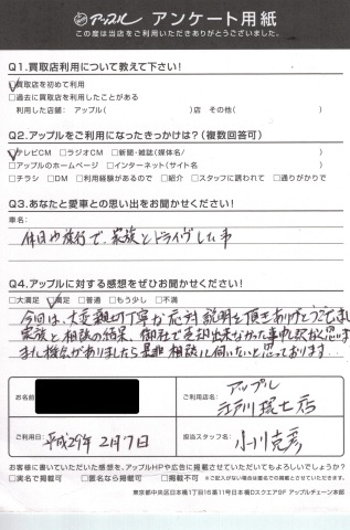 家族と相談の結果、御社で売却出来なかった事、申し訳なく思います。