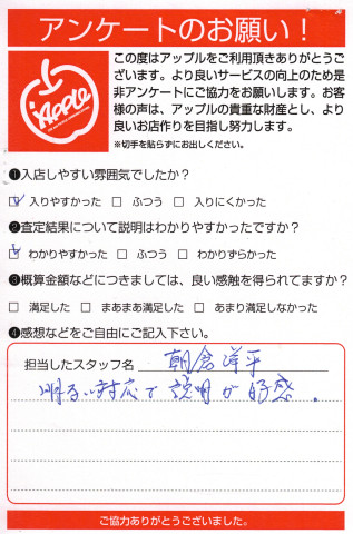 お車のご相談・ 査定だけでもOK! カンタン 入力 30秒 アップルがブランド買取始めました! お電話でも受付中! 受付時間10:00 ~ 19:00(最終査定受付時間は18:00です) 03-5658-0393 お車のご相談・ 査定だけでもOK! カンタン 入力 30秒 アップルがブランド買取始めました! お電話でも受付中! 受付時間10:00 ~ 19:00(最終査定受付時間は18:00です) 03-5658-0393 アップルがブランド買取始めました! お電話でも受付中! 受付時間10:00 ~ 19:00(最終査定受付時間は18:00です) 03-5658-0393 店舗情報 在庫車 スタッフ紹介 ブログ お客様の声 キャンペーン お得 無料査定 click お客様の声 ご記入日: 2017/07/14 S様 明るい対応で説明が好感。 前へ 次へ お客様の声一覧を見る
