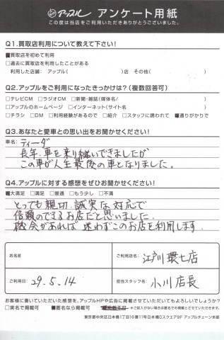 A:長年、車を乗り継いできましたが、この車が人生最後の車となりました。