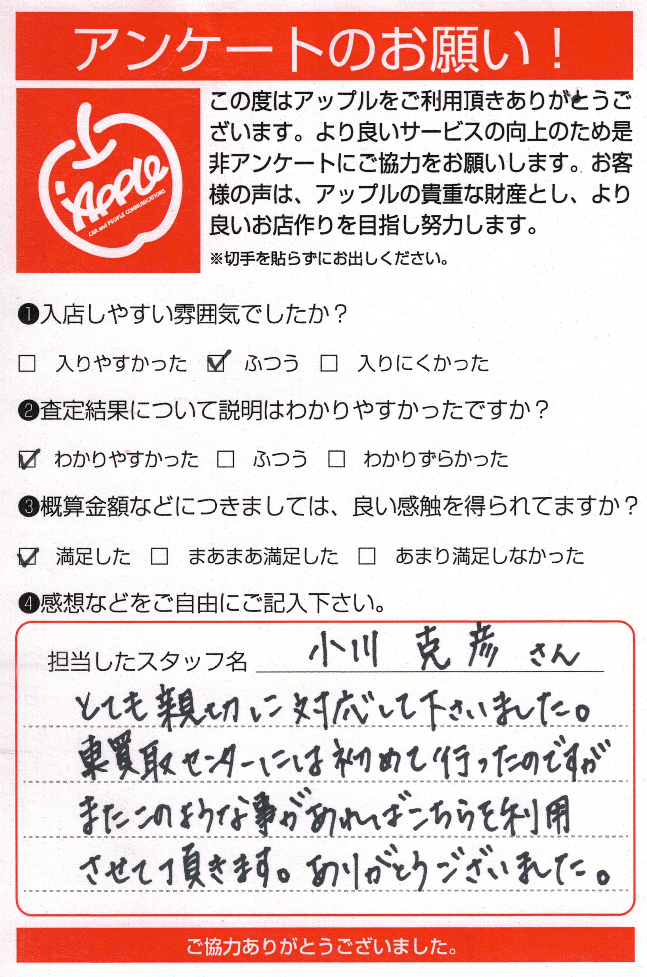 お車のご相談・ 査定だけでもOK! カンタン 入力 30秒 アップルがブランド買取始めました! お電話でも受付中! 受付時間10:00 ~ 19:00(最終査定受付時間は18:00です) 03-5658-0393 お車のご相談・ 査定だけでもOK! カンタン 入力 30秒 アップルがブランド買取始めました! お電話でも受付中! 受付時間10:00 ~ 19:00(最終査定受付時間は18:00です) 03-5658-0393 アップルがブランド買取始めました! お電話でも受付中! 受付時間10:00 ~ 19:00(最終査定受付時間は18:00です) 03-5658-0393 店舗情報 在庫車 スタッフ紹介 ブログ お客様の声 キャンペーン お得 無料査定 click お客様の声 ご記入日: 2018/10/06 A様 とても親切に対応して下さいました。車買取センターには初めて行ったのですが、またこのような事があればこちらを利用させて頂きます。ありがとうございました。 前へ 次へ お客様の声一覧を見る