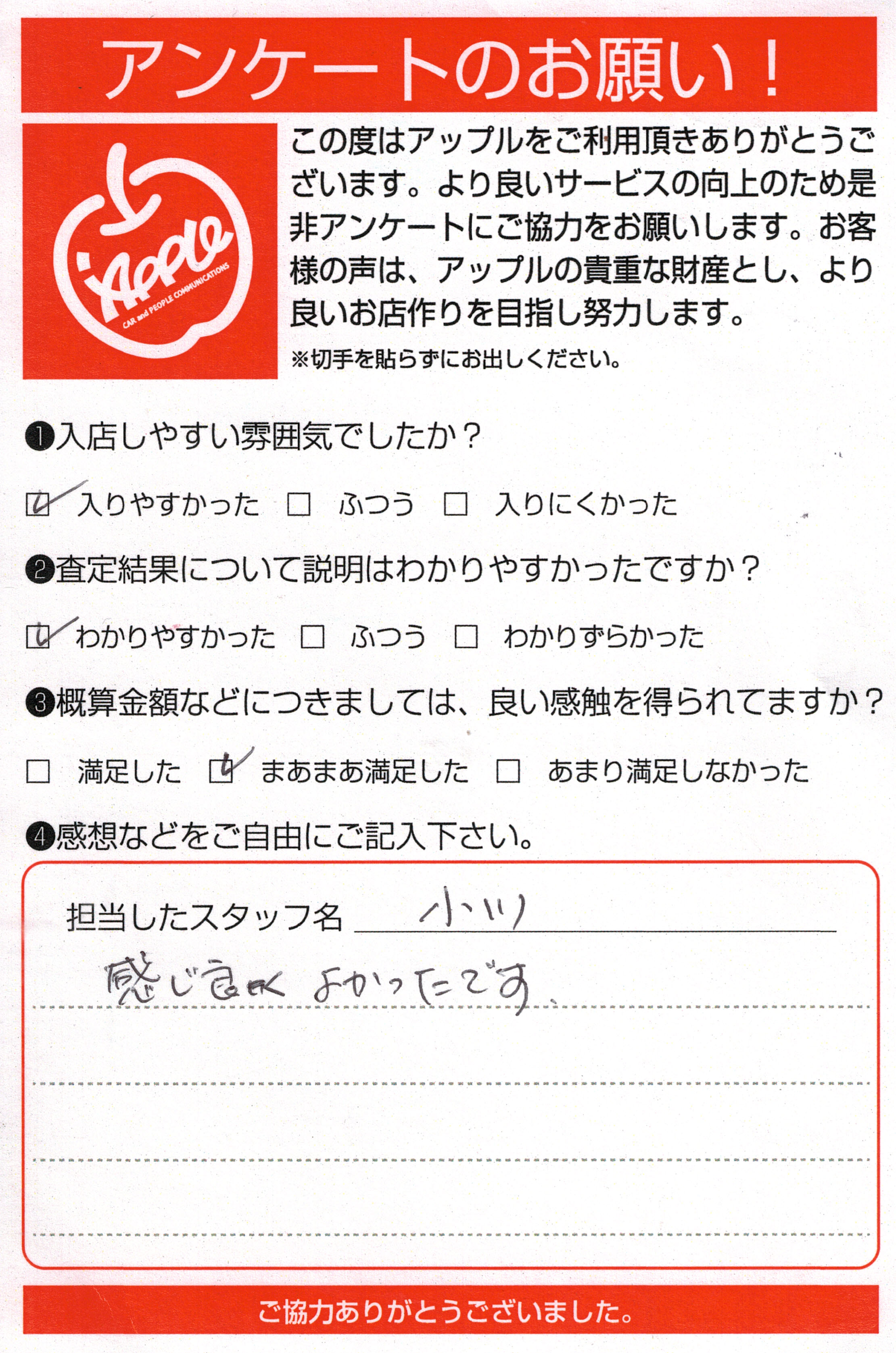 お車のご相談・ 査定だけでもOK! カンタン 入力 30秒 アップルがブランド買取始めました! お電話でも受付中! 受付時間10:00 ~ 19:00(最終査定受付時間は18:00です) 03-5658-0393 お車のご相談・ 査定だけでもOK! カンタン 入力 30秒 アップルがブランド買取始めました! お電話でも受付中! 受付時間10:00 ~ 19:00(最終査定受付時間は18:00です) 03-5658-0393 アップルがブランド買取始めました! お電話でも受付中! 受付時間10:00 ~ 19:00(最終査定受付時間は18:00です) 03-5658-0393 店舗情報 在庫車 スタッフ紹介 ブログ お客様の声 キャンペーン お得 無料査定 click お客様の声 ご記入日: 2018/09/23 M様 車名:トヨタ エスティマ 感じ良くよかったです。 前へ 次へ お客様の声一覧を見る