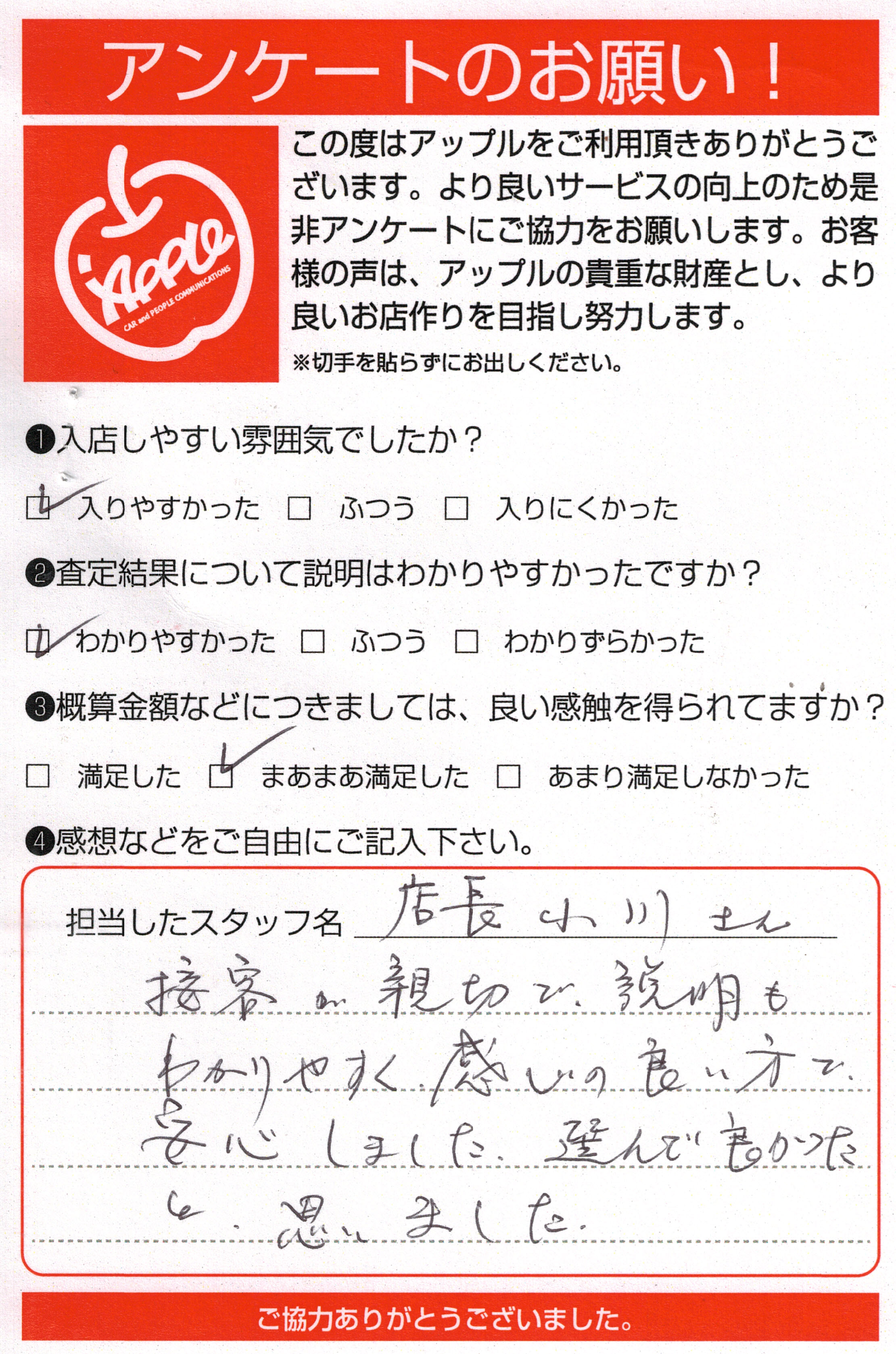お車のご相談・ 査定だけでもOK! カンタン 入力 30秒 アップルがブランド買取始めました! お電話でも受付中! 受付時間10:00 ~ 19:00(最終査定受付時間は18:00です) 03-5658-0393 お車のご相談・ 査定だけでもOK! カンタン 入力 30秒 アップルがブランド買取始めました! お電話でも受付中! 受付時間10:00 ~ 19:00(最終査定受付時間は18:00です) 03-5658-0393 アップルがブランド買取始めました! お電話でも受付中! 受付時間10:00 ~ 19:00(最終査定受付時間は18:00です) 03-5658-0393 店舗情報 在庫車 スタッフ紹介 ブログ お客様の声 キャンペーン お得 無料査定 click お客様の声 ご記入日: 2019/06/03 N様 車名:トヨタ カローラセダン 説客が親切で、説明も分かりやすく、感じの良い方で安心しました。選んで良かったと思いました。 前へ 次へ お客様の声一覧を見る