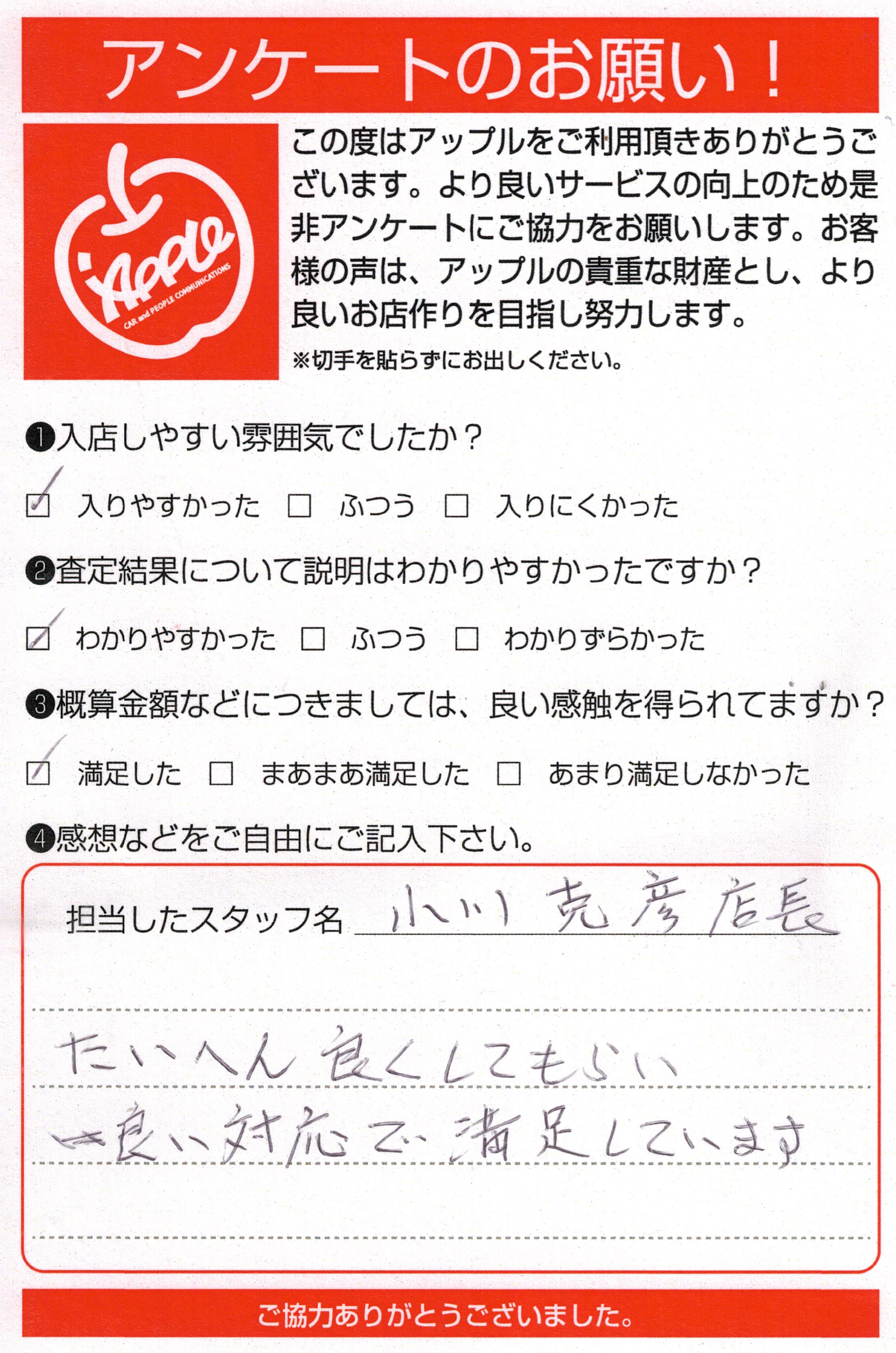 お車のご相談・ 査定だけでもOK! カンタン 入力 30秒 アップルがブランド買取始めました! お電話でも受付中! 受付時間10:00 ~ 19:00(最終査定受付時間は18:00です) 03-5658-0393 お車のご相談・ 査定だけでもOK! カンタン 入力 30秒 アップルがブランド買取始めました! お電話でも受付中! 受付時間10:00 ~ 19:00(最終査定受付時間は18:00です) 03-5658-0393 アップルがブランド買取始めました! お電話でも受付中! 受付時間10:00 ~ 19:00(最終査定受付時間は18:00です) 03-5658-0393 店舗情報 在庫車 スタッフ紹介 ブログ お客様の声 キャンペーン お得 無料査定 click お客様の声 ご記入日: 2019/06/02 T様 車名:トヨタ ヴェルファイア(H27年1月~のHYBRID含む) たいへん良くしてもらい、良い対応で満足しています。 前へ 次へ お客様の声一覧を見る