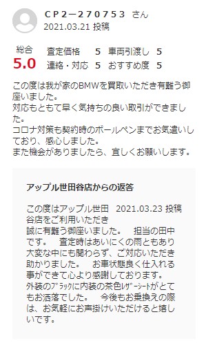 この度は我が家のBMWを買取いただき有難う御座いました。