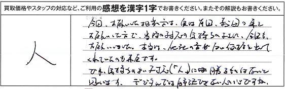 今日お願いした担当の方は実は先日義母の車をお願いした方で、当時の対応の気持ちのよさに、今日もお願いしました。本当は他社の方が良い金額を出してくれていたのも事実です。
