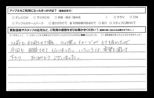 今回も相談させてもらいました。いろいろな希望を聞いて下さり