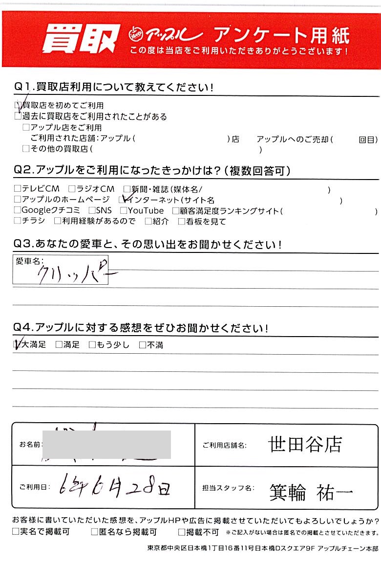 東京都杉並区 アンケート用紙より S様 車名:日産 クリッパー