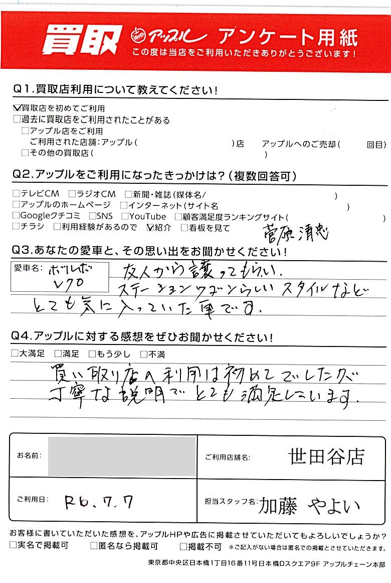 東京都西東京市 アンケート用紙より K様 車名:ボルボ V70