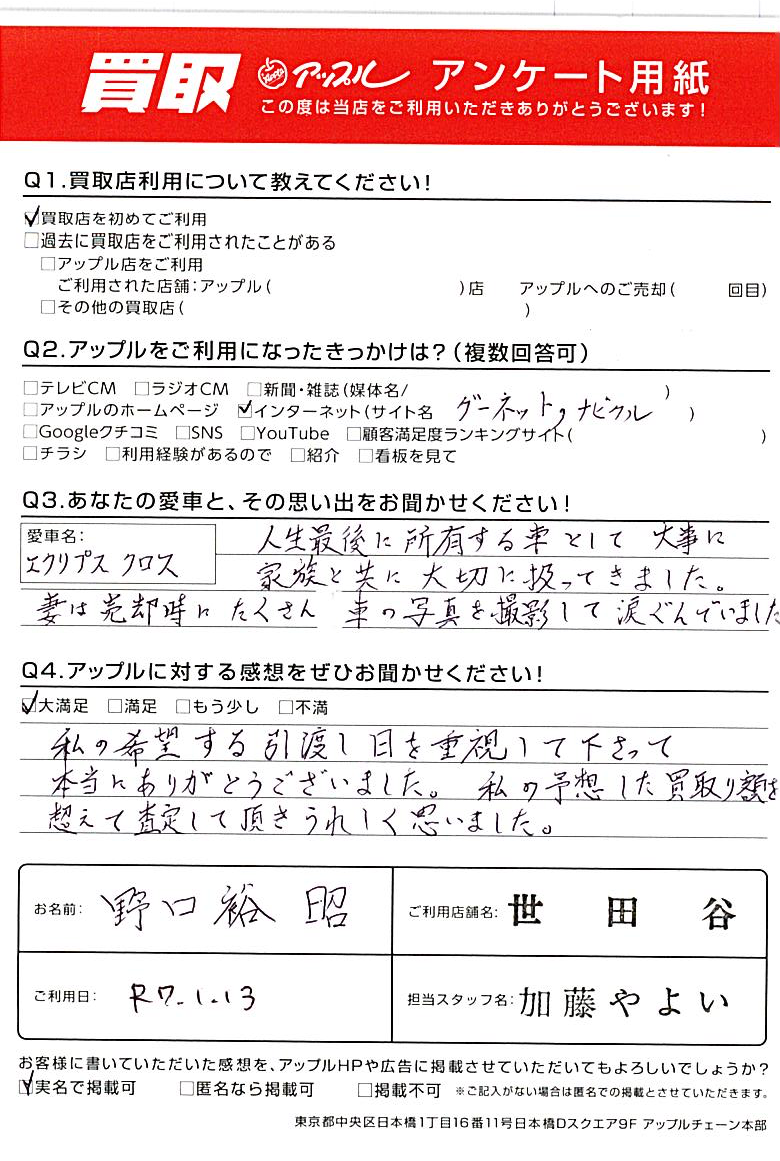 東京都 アンケート用より 野口裕昭様 車名:三菱 エクリプスクロス
