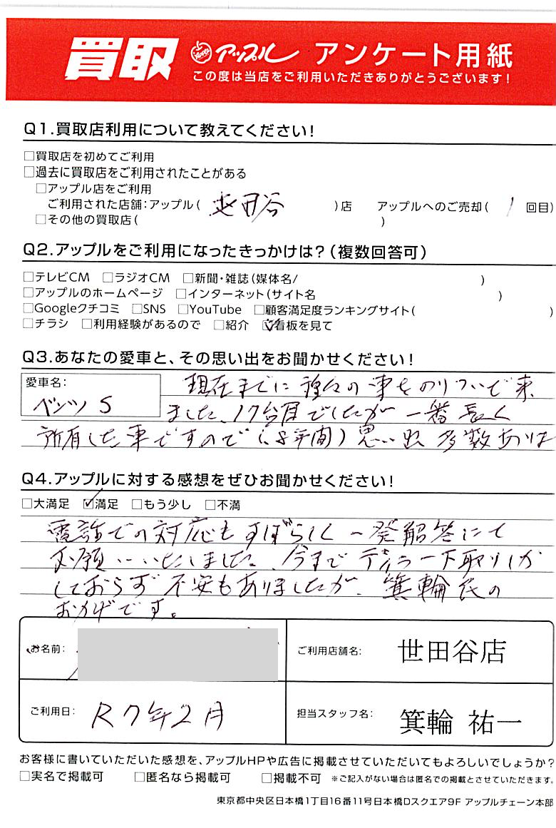 東京都杉並区 アンケート用紙より Y様 車名:メルセデス・ベンツ Sクラス