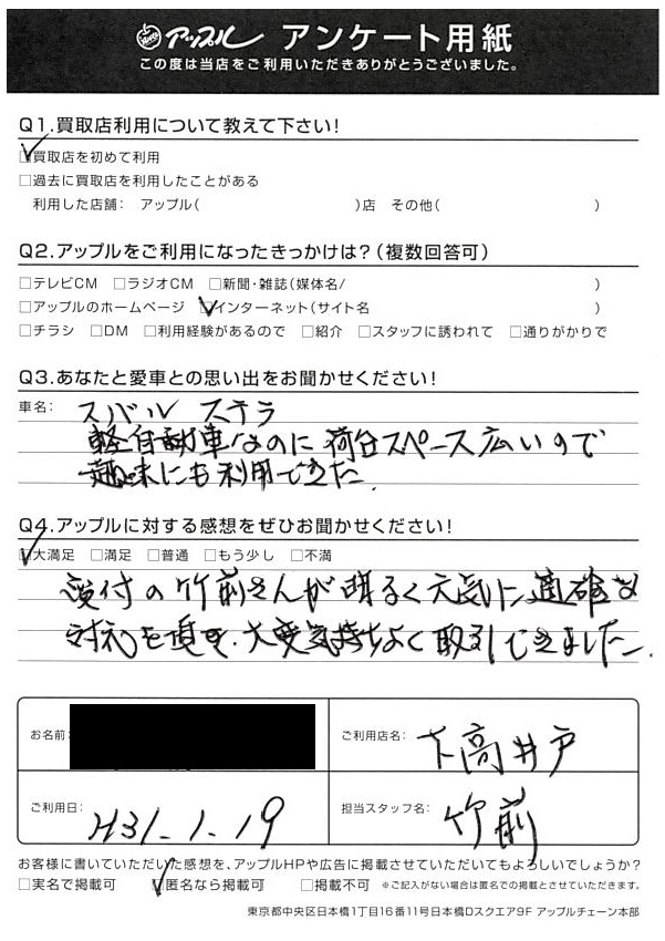 東京都中野区 S様 車名:スバル ステラ